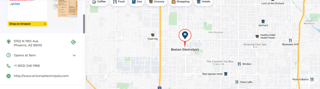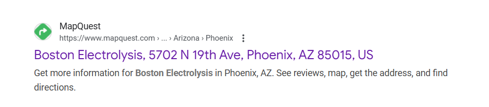 Senza Pelo Medspa is a fake Boston Electrolysis® Trademark Infringer on Mapquest.com. I don’t know why Maria Di Nicola is infringing and advertising as Boston Electrolysis® however it’s apparent she is not a licensed electrologist and clearly leaves out the fact that she never attended a real accredited electrolysis school in any form or manner. Maria Di Nicola owner Senza Pelo Med Spa is pretending to be Boston Electrolysis® has no last name on her website where she states she has 40 years of experience but has no requisite electrolysis training from an accredited electrolysis school whatsoever nor in any form or manner. Her Phoenix business license has nothing to do with electrolysis in any form or manner. Nonetheless she is not a state licensed and registered electrologist and she fails to list her electrolysis education training in a defined manner. Consumer beware Arizona is full of uneducated non-licensed poorly uneducated electrologists with no professional education and no practical training nor any testing.